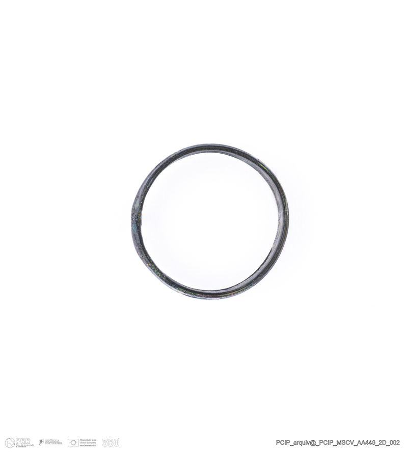 Matéria/Técnica: Vidro; Cronologia: Século XVI- XVII; Autoria: Desconhecida; Dimensões: Diâmetro: 14,5mm; Espessura: 3,5mm.