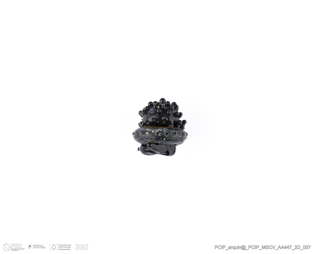Matéria/Técnica: Vidro; Cronologia: Século XVI- XVII; Autoria: Desconhecida; Dimensões: Diâmetro máximo: 21mm; Largura: 9mm; Espessura: 10mm.
