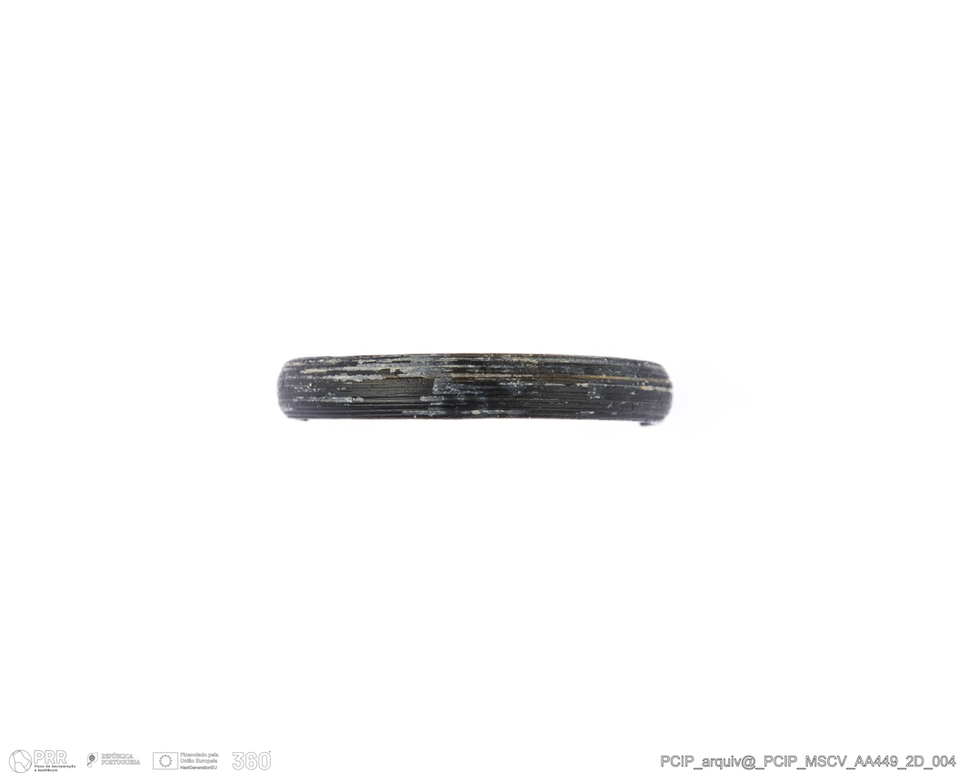 Matéria/Técnica: Vidro; Cronologia: Século XVI- XVII; Autoria: Desconhecida; Dimensões: Diâmetro máximo: 21mm; Altura: 4mm; Espessura: 1mm.