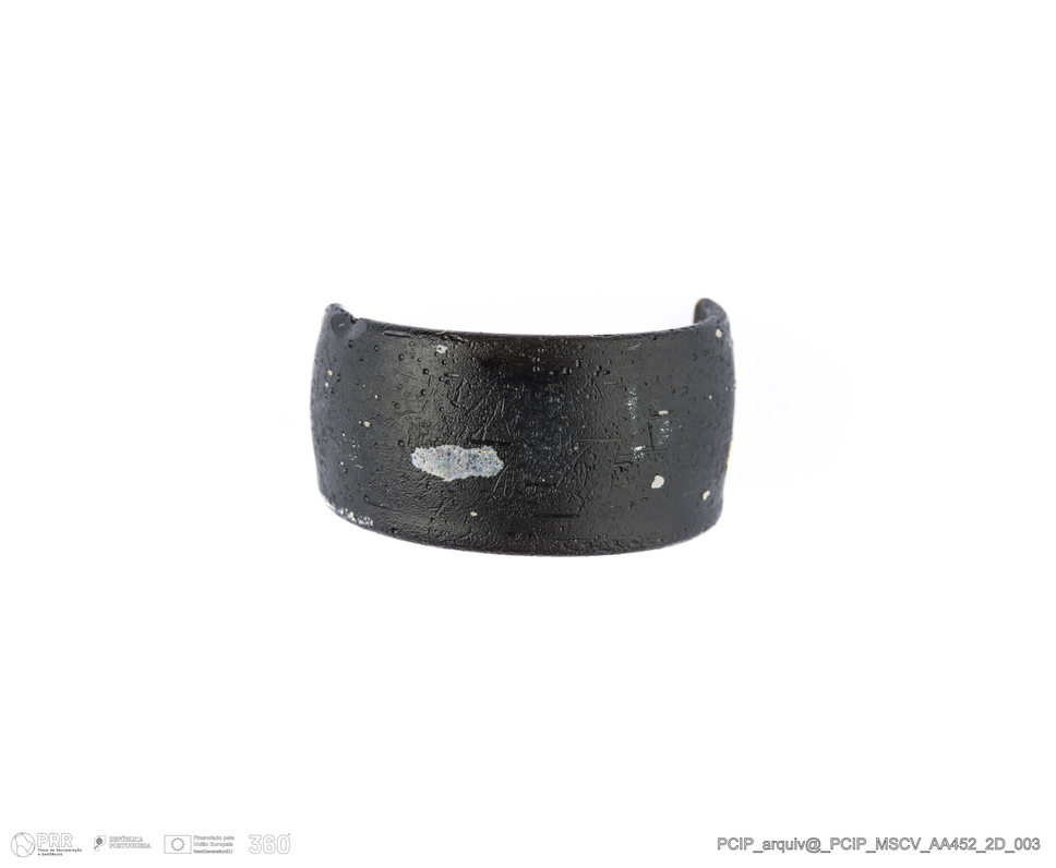 Matéria/Técnica: Vidro; Cronologia: Século XVI- XVII; Autoria: Desconhecida; Dimensões: Diâmetro máximo: 18mm; Altura: 9mm; Espessura: 2mm.