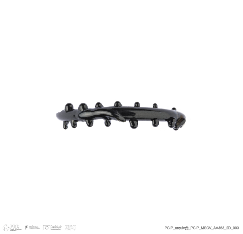 Matéria/Técnica: Vidro; Cronologia: Século XVI- XVII; Autoria: Desconhecida; Dimensões: Diâmetro máximo: 21mm; Altura: 4mm; Espessura: 3mm.