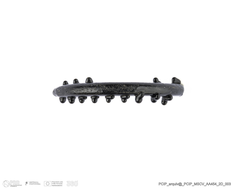 Matéria/Técnica: Vidro; Cronologia: Século XVI- XVII; Autoria: Desconhecida; Dimensões: Diâmetro máximo: 21mm; Altura: 4mm; Espessura: 3mm.
