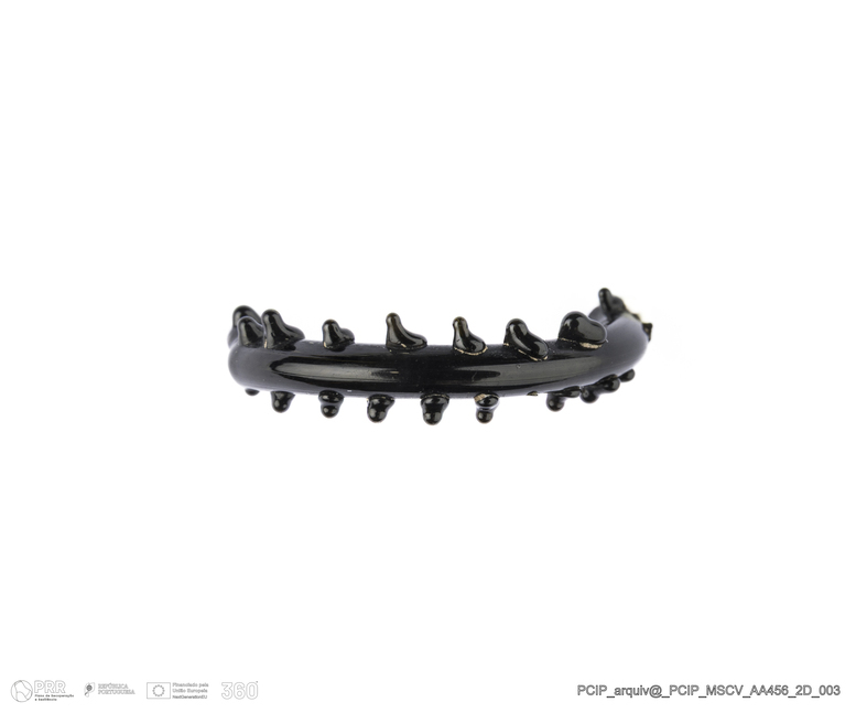 Matéria/Técnica: Vidro; Cronologia: Século XVI- XVII; Autoria: Desconhecida; Dimensões: Diâmetro máximo: 18mm; Altura: 4mm; Espessura: 3mm.