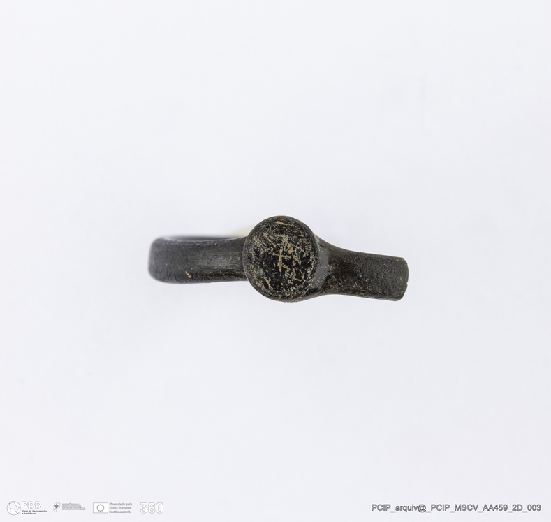 Matéria/Técnica: Vidro; Cronologia: Século XVI- XVII; Autoria: Desconhecida; Dimensões: Diâmetro máximo: 22mm; Altura: 5mm; Espessura: 2mm.