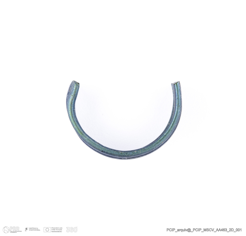 Matéria/Técnica: Vidro; Cronologia: Século XVI- XVII; Autoria: Desconhecida; Dimensões: Diâmetro: 18mm; Largura: 55mm; Espessura: 15mm.