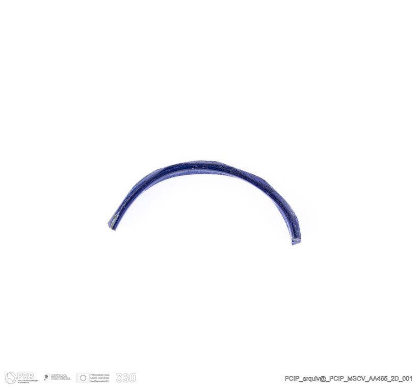 Matéria/Técnica: Vidro; Cronologia: Século XVI- XVII; Autoria: Desconhecida; Dimensões: Diâmetro máximo: 20mm; Altura: 3mm; Espessura: 1mm.