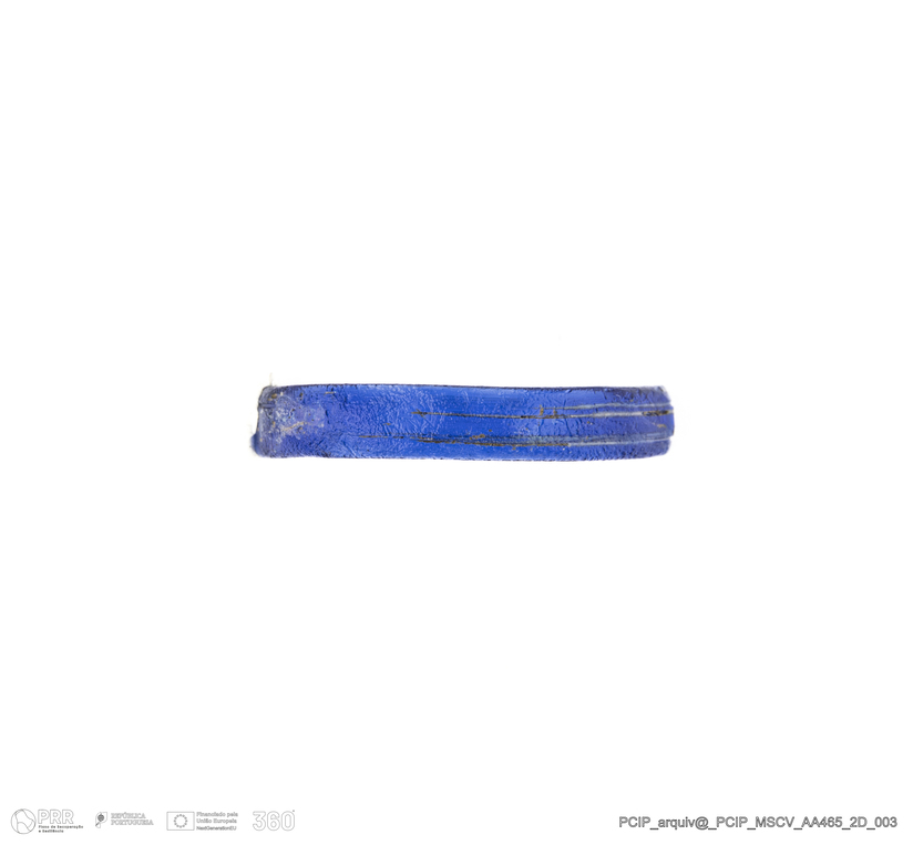 Matéria/Técnica: Vidro; Cronologia: Século XVI- XVII; Autoria: Desconhecida; Dimensões: Diâmetro máximo: 20mm; Altura: 3mm; Espessura: 1mm.