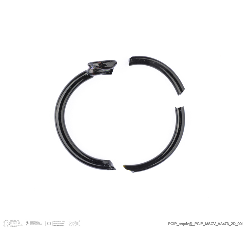 Matéria/Técnica: Vidro; Cronologia: Século XVI- XVII; Autoria: Desconhecida; Dimensões: Diâmetro máximo: 18mm; Altura: 4mm; Espessura: 3mm.