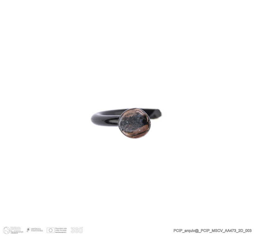 Matéria/Técnica: Vidro; Cronologia: Século XVI- XVII; Autoria: Desconhecida; Dimensões: Diâmetro máximo: 18mm; Altura: 4mm; Espessura: 3mm.