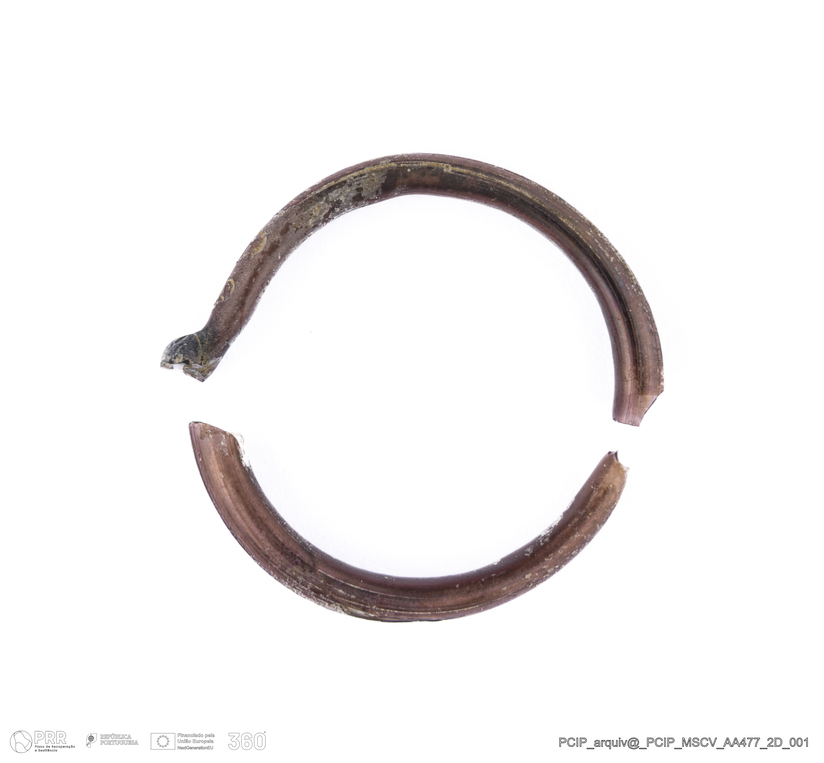 Matéria/Técnica: Vidro; Cronologia: Século XVI- XVII; Autoria: Desconhecida; Dimensões: Diâmetro máximo: 22mm; Altura: 4mm; Espessura: 2mm.