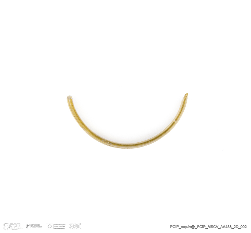 Matéria/Técnica: Vidro; Cronologia: Século XVI- XVII; Autoria: Desconhecida; Dimensões: Diâmetro máximo: 18mm; Altura: 3mm; Espessura: 1mm.