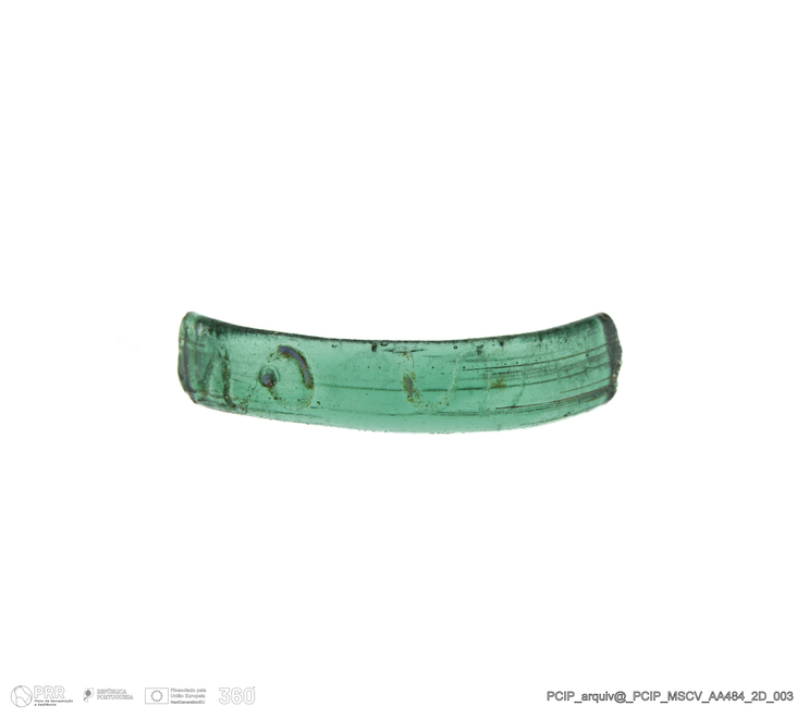 Matéria/Técnica: Vidro; Cronologia: Século XVI- XVII; Autoria: Desconhecida; Dimensões: Altura máxima 3mm; Espessura: 1mm.