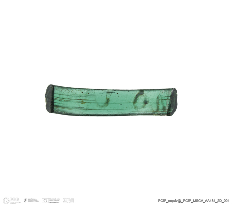 Matéria/Técnica: Vidro; Cronologia: Século XVI- XVII; Autoria: Desconhecida; Dimensões: Altura máxima 3mm; Espessura: 1mm.