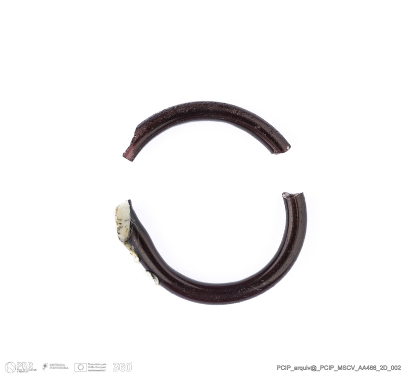Matéria/Técnica: Vidro; Cronologia: Século XVI- XVII; Autoria: Desconhecida; Dimensões: Diâmetro máximo: 18mm; Altura: 3mm; Espessura: 2mm.