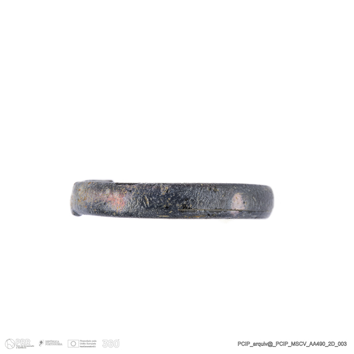 Matéria/Técnica: Vidro; Cronologia: Século XVI- XVII; Autoria: Desconhecida; Dimensões: Diâmetro máximo: 19mm; Altura: 3mm; Espessura: 1mm.