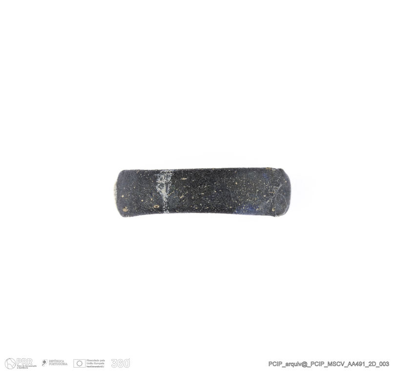 Matéria/Técnica: Vidro; Cronologia: Século XVI- XVII; Autoria: Desconhecida; Dimensões: Diâmetro máximo: 18mm; Altura: 4mm; Espessura: 2mm.