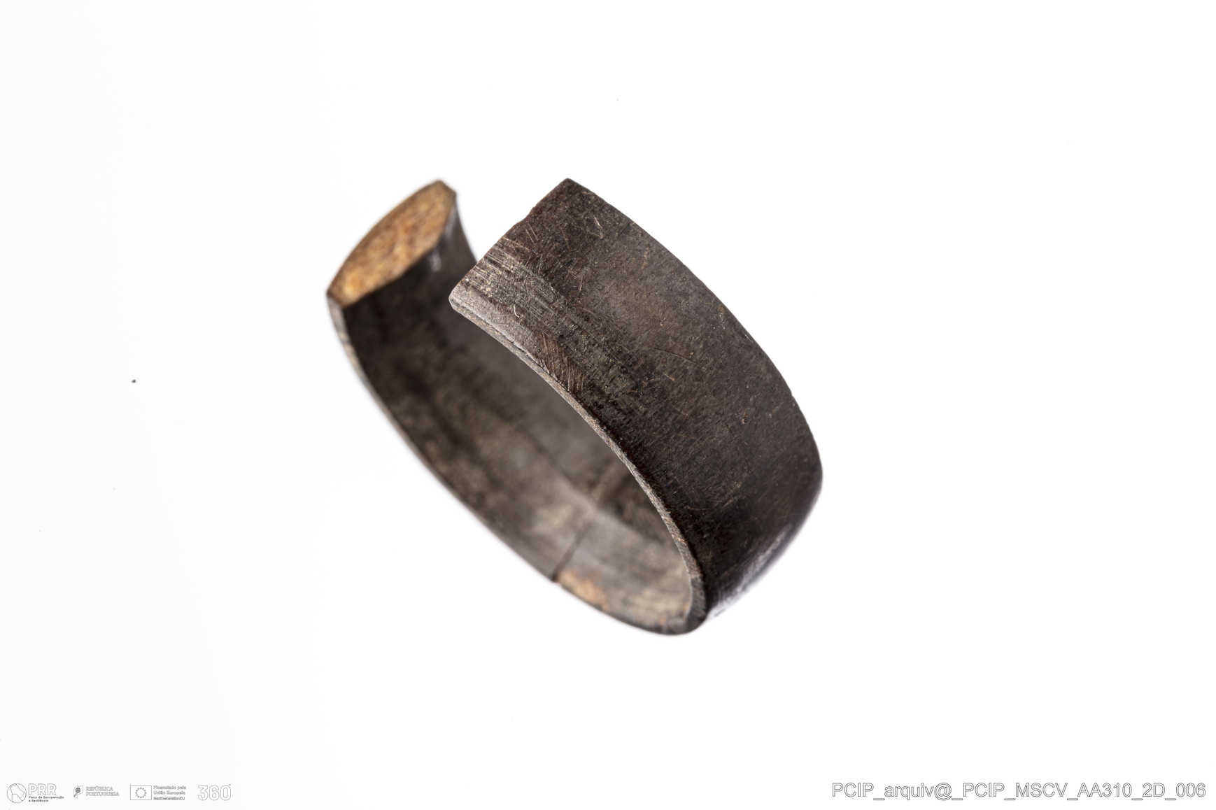 Matéria/Técnica: Osso ou madeira; Cronologia: Século XVI- XVII; Autoria: Desconhecida; Dimensões: Diâmetro máximo: 22mm; Altura: 7mm; Espessura: 3mm.