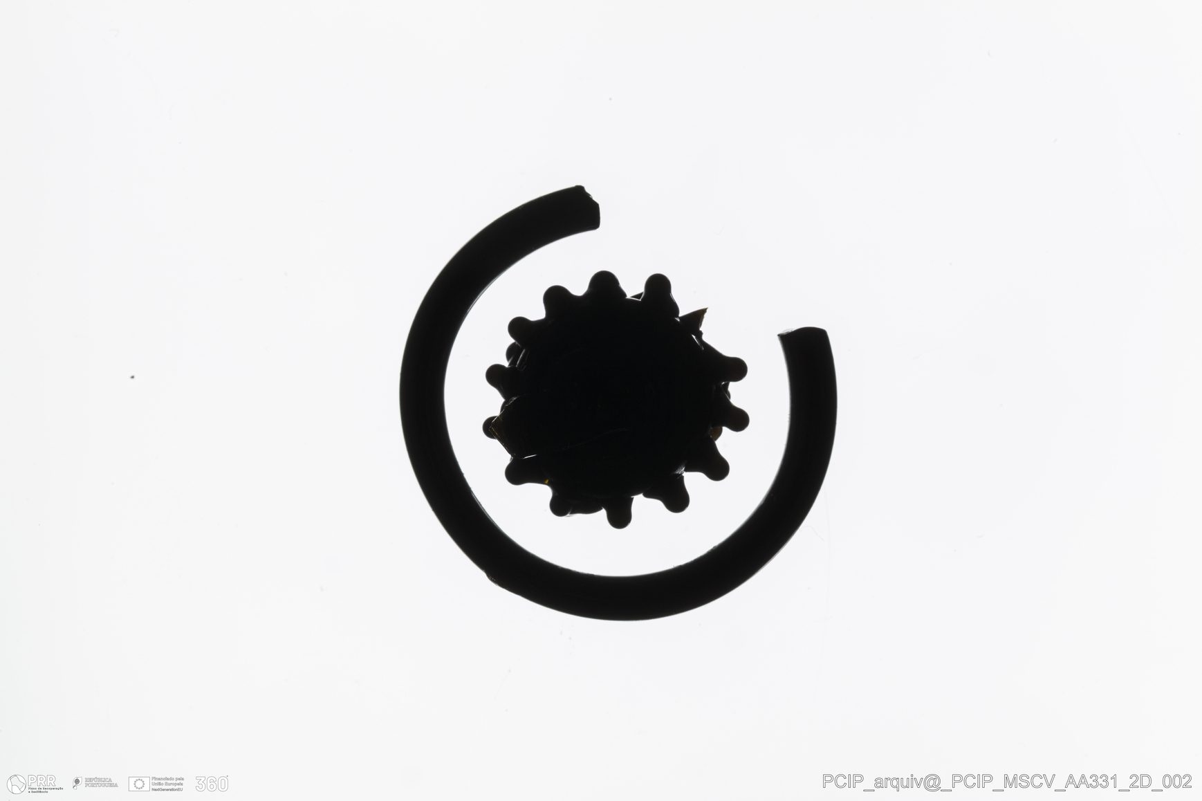 Matéria/Técnica: Vidro; Cronologia: Século XVI- XVII; Autoria: Desconhecida; Dimensões: Diâmetro máximo: 20mm; Altura: 11mm; Espessura: 5mm.