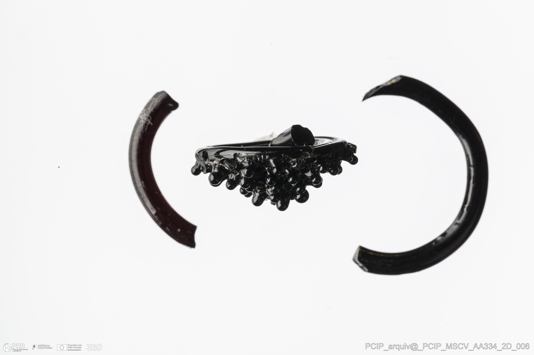 Matéria/Técnica: Vidro; Cronologia: Século XVI- XVII; Autoria: Desconhecida; Dimensões: Diâmetro máximo: 21mm; Altura: 15mm; Espessura: 9mm.