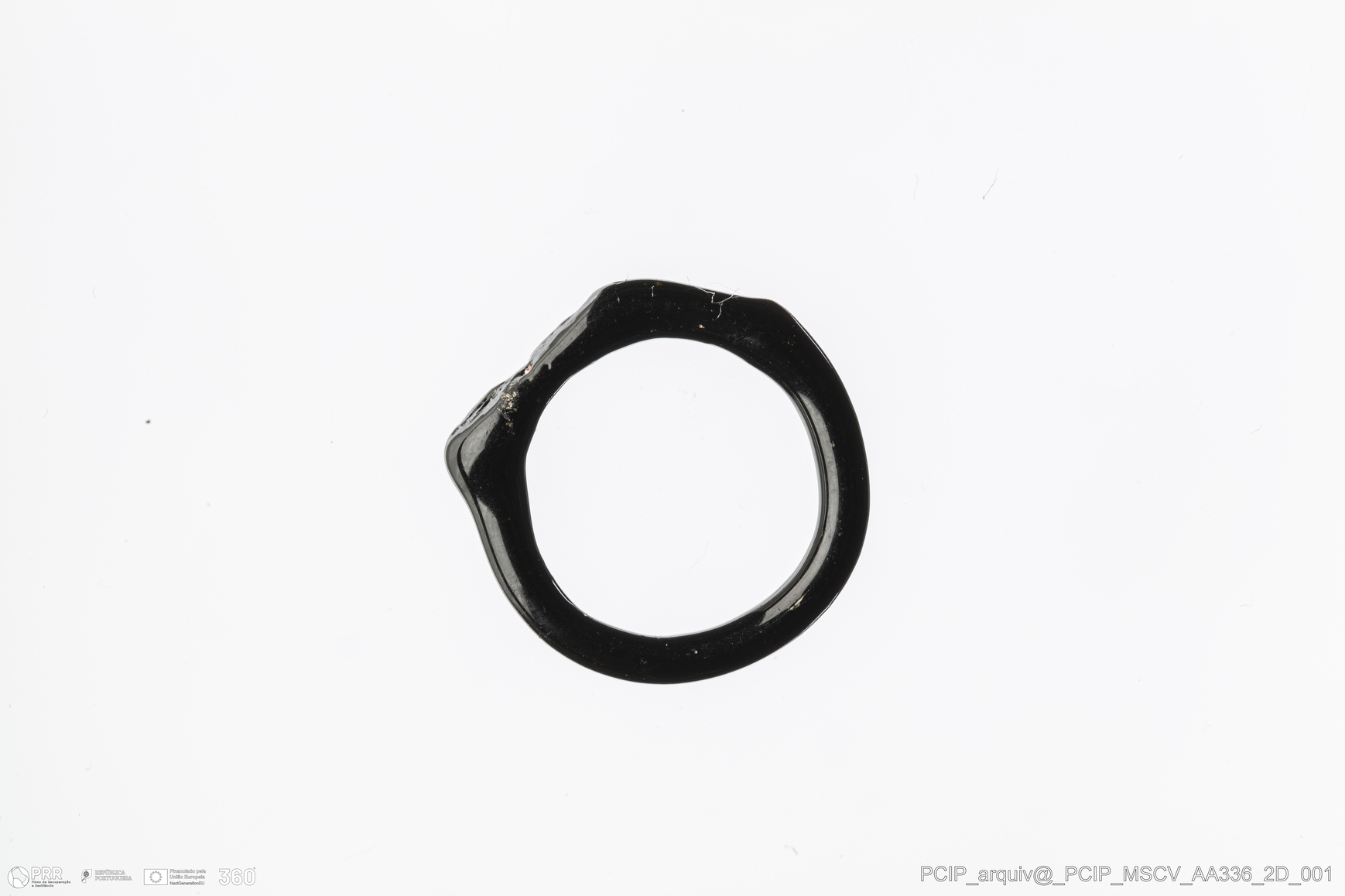 Matéria/Técnica: Vidro; Cronologia: Século XVI- XVII; Autoria: Desconhecida; Dimensões: Diâmetro máximo: 15mm; Altura: 4mm; Espessura: 1mm.