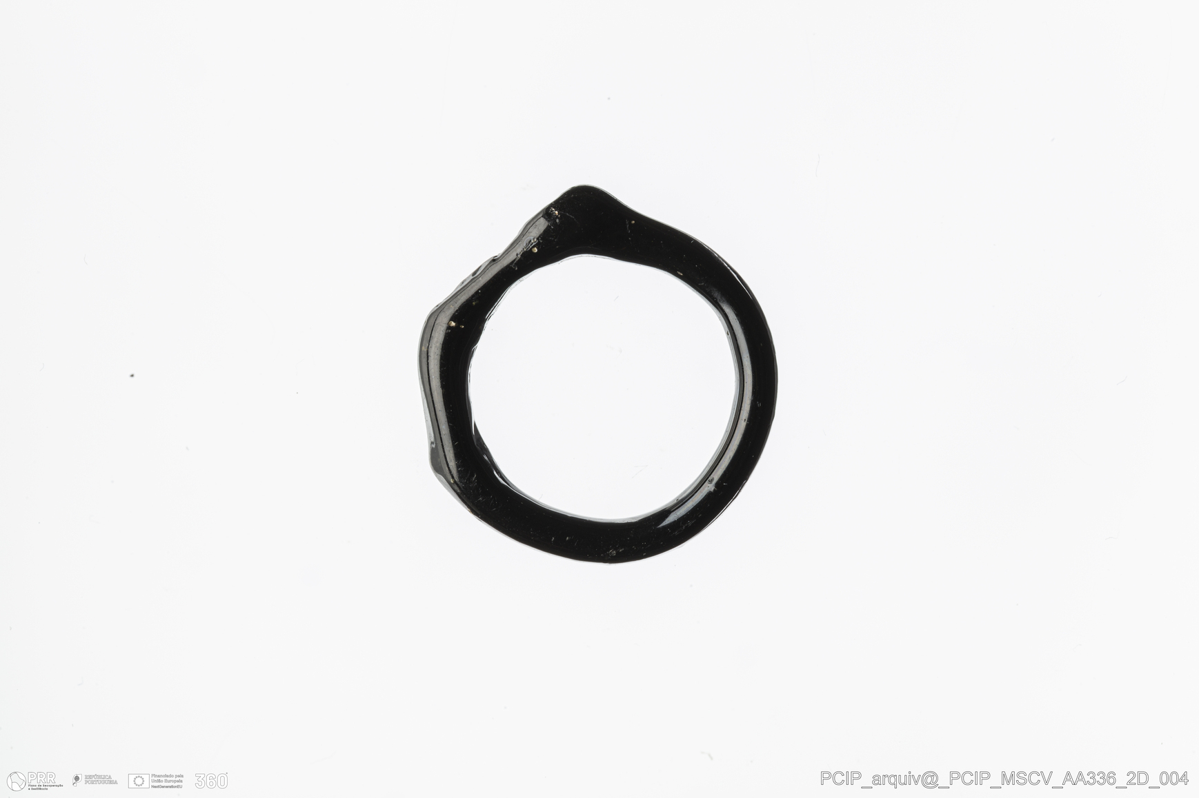 Matéria/Técnica: Vidro; Cronologia: Século XVI- XVII; Autoria: Desconhecida; Dimensões: Diâmetro máximo: 15mm; Altura: 4mm; Espessura: 1mm.