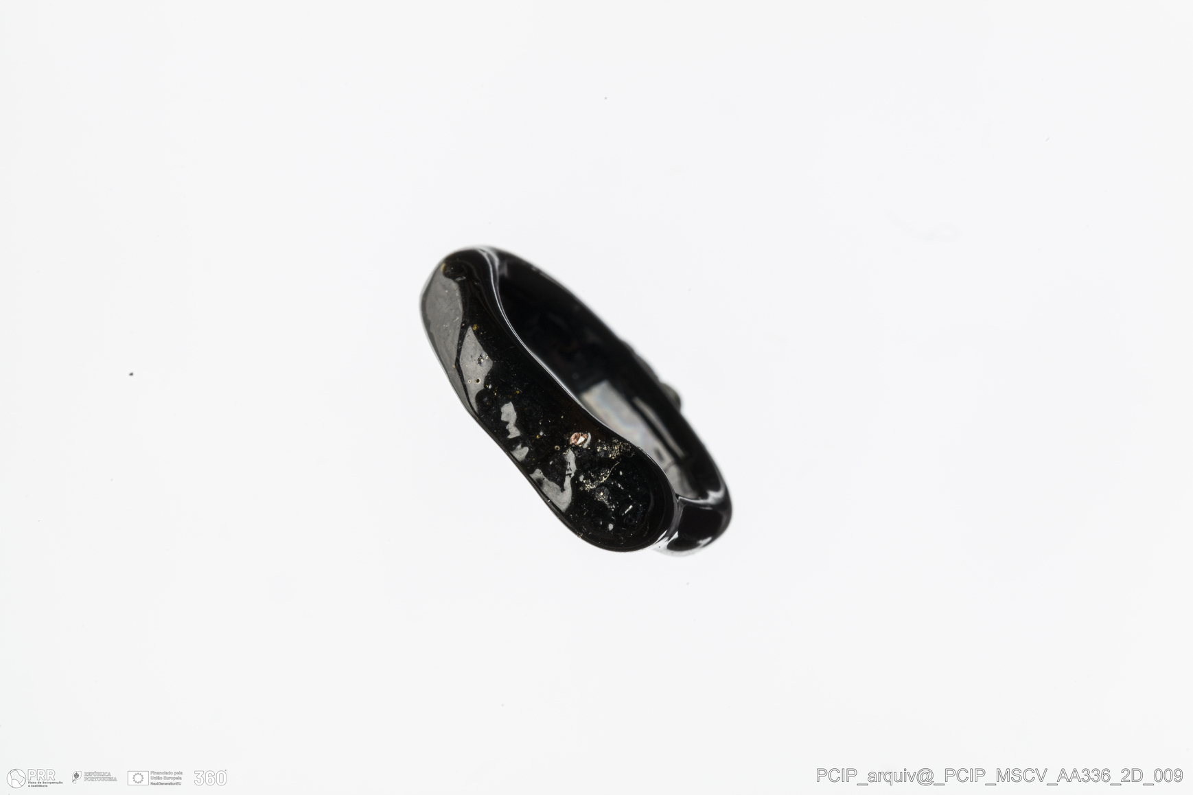 Matéria/Técnica: Vidro; Cronologia: Século XVI- XVII; Autoria: Desconhecida; Dimensões: Diâmetro máximo: 15mm; Altura: 4mm; Espessura: 1mm.