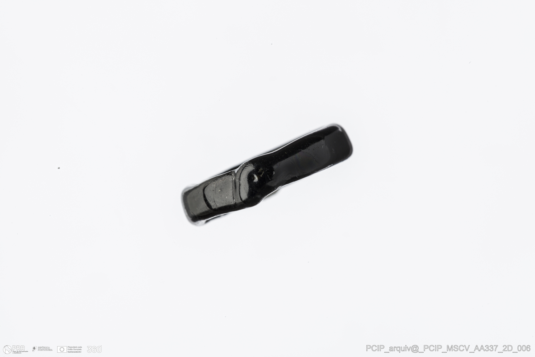 Matéria/Técnica: Vidro; Cronologia: Século XVI- XVII; Autoria: Desconhecida; Dimensões: Diâmetro máximo: 13mm; Altura: 3mm; Espessura: 1mm.