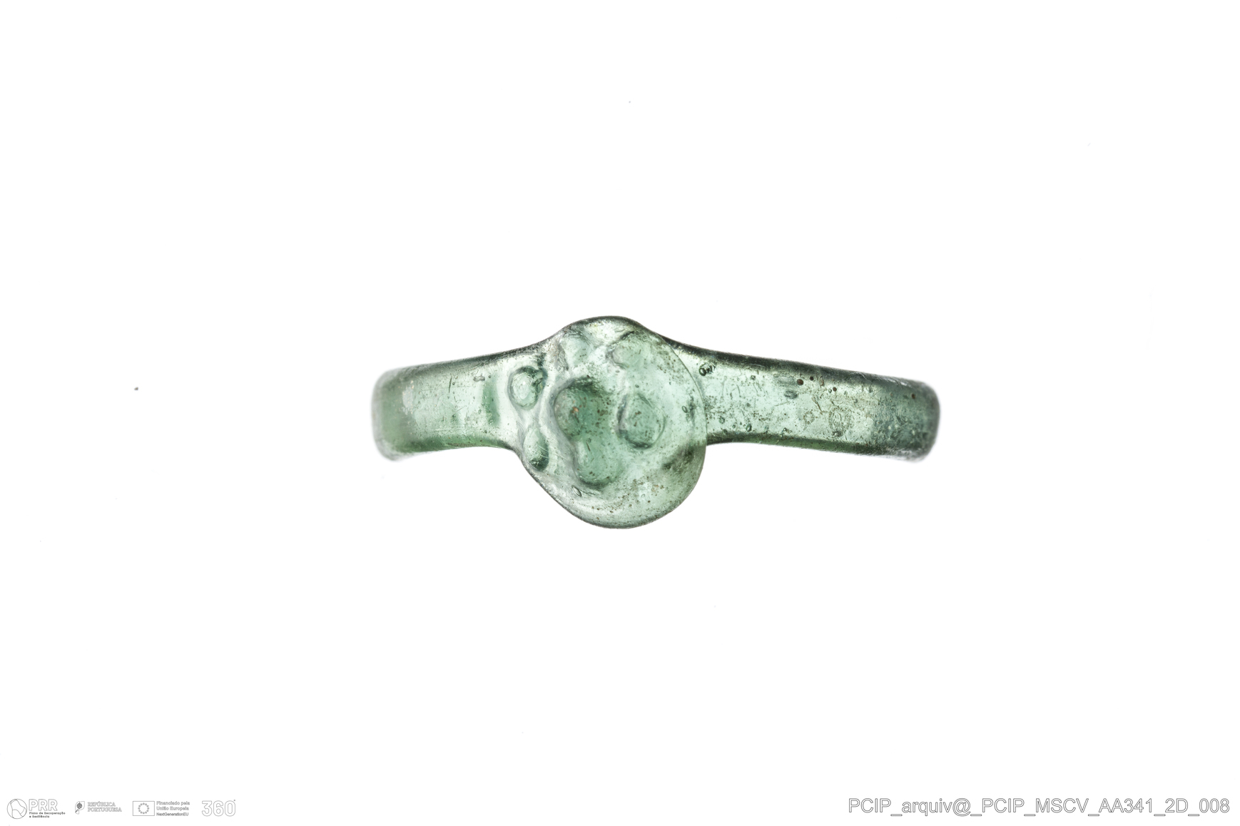 Matéria/Técnica: Vidro; Cronologia: Século XVI- XVII; Autoria: Desconhecida; Dimensões: Diâmetro: 19mm; Espessura: 12mm.