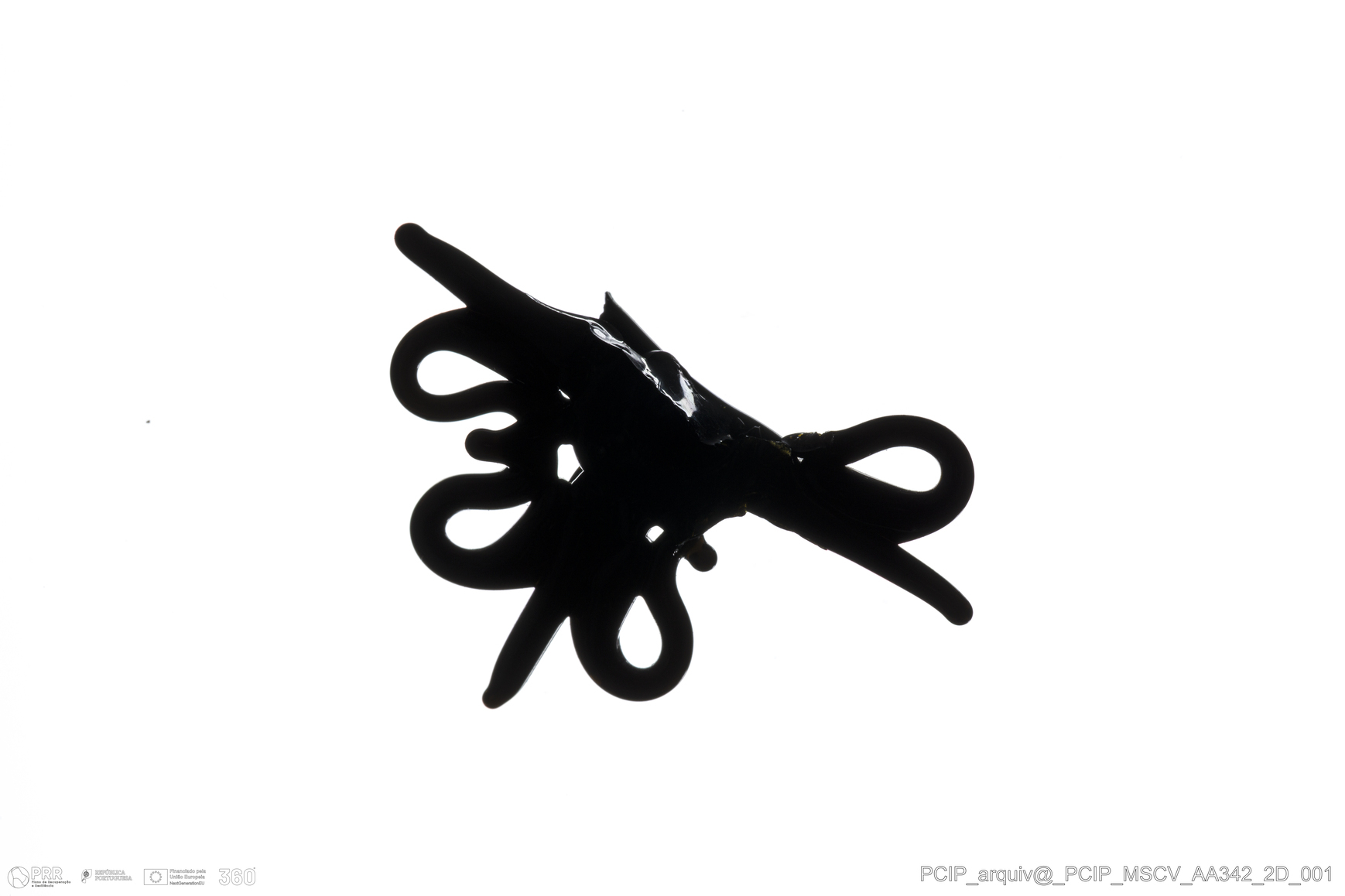 Matéria/Técnica: Vidro; Cronologia: Século XVI- XVII; Autoria: Desconhecida; Dimensões: Comprimento: 27mm; Largura: 18mm; Espessura: 5mm.