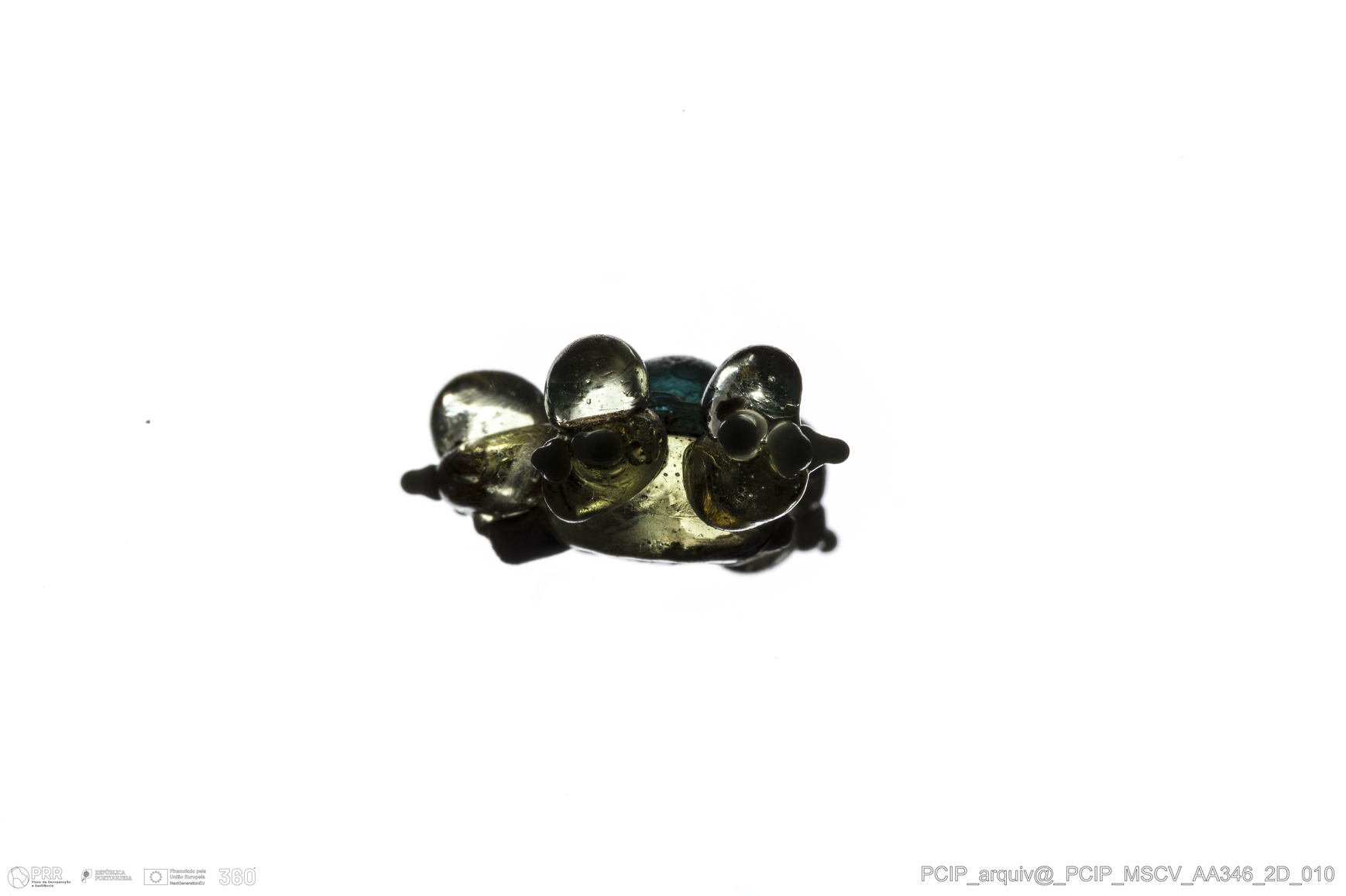 Matéria/Técnica: Vidro; Cronologia: Século XVI- XVII; Autoria: Desconhecida; Dimensões: Comprimento: 12mm; Largura: 12mm; Altura: 6mm.