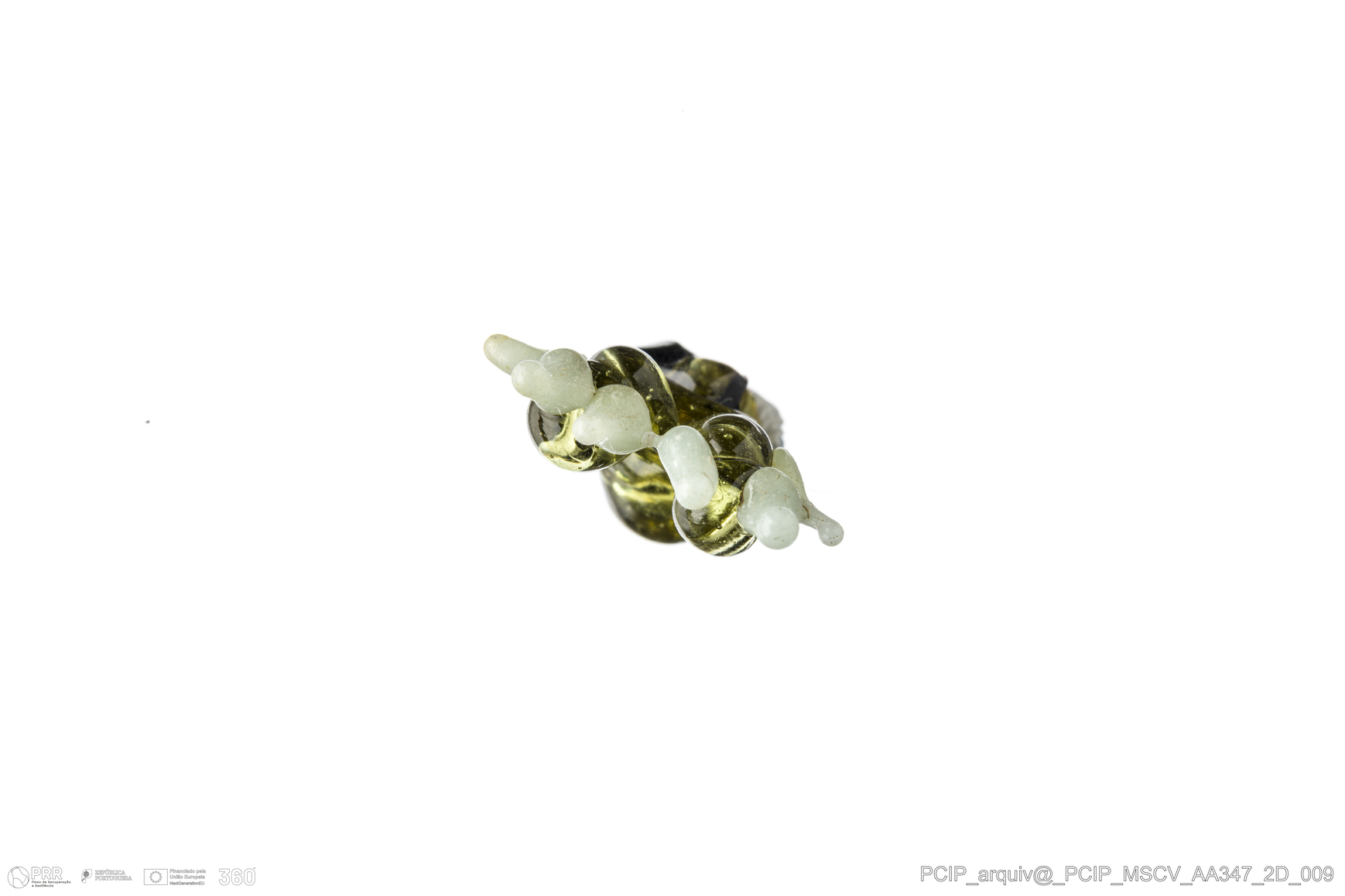 Matéria/Técnica: Vidro; Cronologia: Século XVI- XVII; Autoria: Desconhecida; Dimensões: Comprimento: 11mm; Largura: 12mm; Espessura: 6mm.