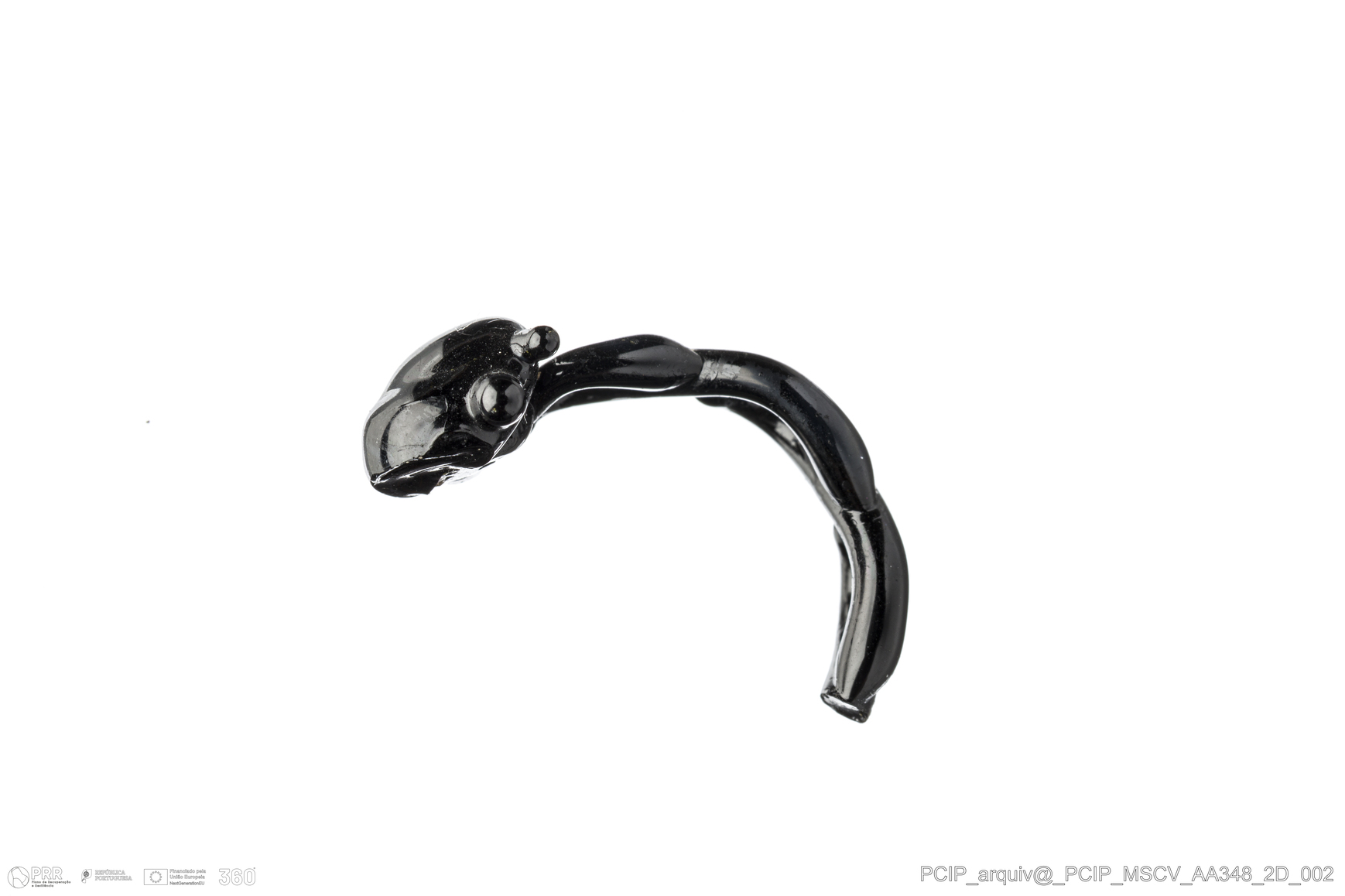 Matéria/Técnica: Vidro; Cronologia: Século XVI-XVII; Autoria: Desconhecida; Dimensões: Altura (coração): 10mm; Diâmetro: 21mm.