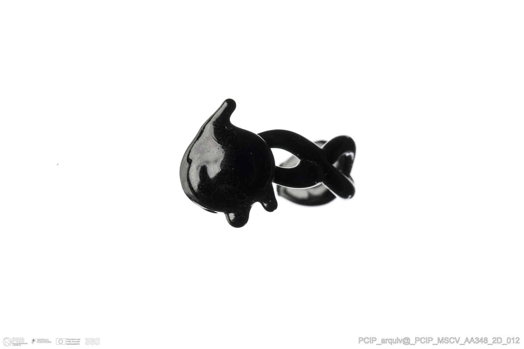 Matéria/Técnica: Vidro; Cronologia: Século XVI-XVII; Autoria: Desconhecida; Dimensões: Altura (coração): 10mm; Diâmetro: 21mm.