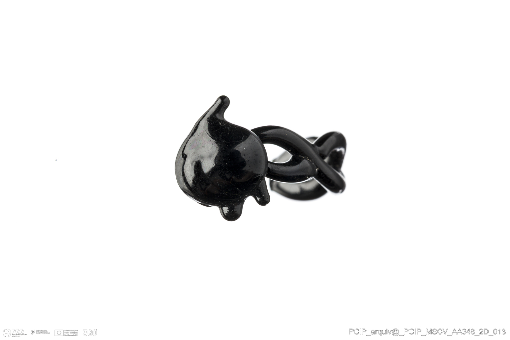 Matéria/Técnica: Vidro; Cronologia: Século XVI-XVII; Autoria: Desconhecida; Dimensões: Altura (coração): 10mm; Diâmetro: 21mm.