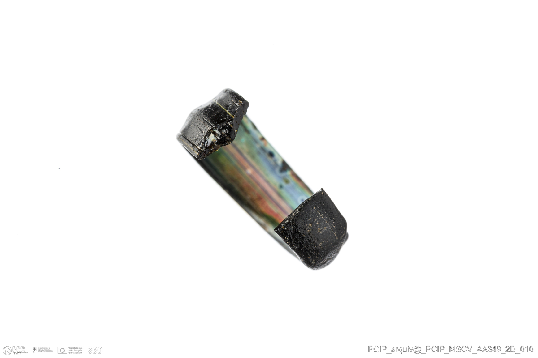 Matéria/Técnica: Vidro; Cronologia: Século XVI- XVII; Autoria: Desconhecida; Dimensões: Diâmetro máximo: 19mm; Altura: 6mm; Espessura: 2mm.