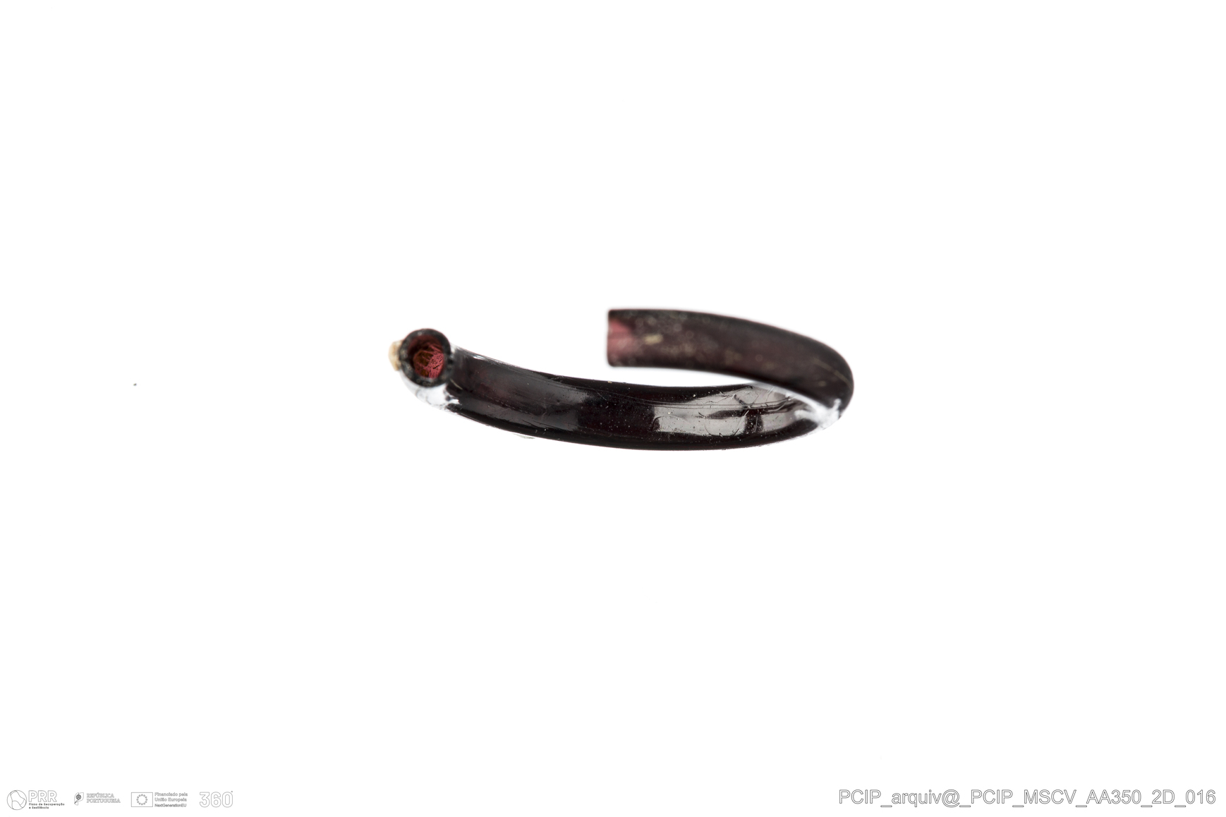 Matéria/Técnica: Vidro; Cronologia: Século XVI- XVII; Autoria: Desconhecida; Dimensões: Diâmetro máximo: 20mm; Altura: 3mm; Espessura: 3mm.