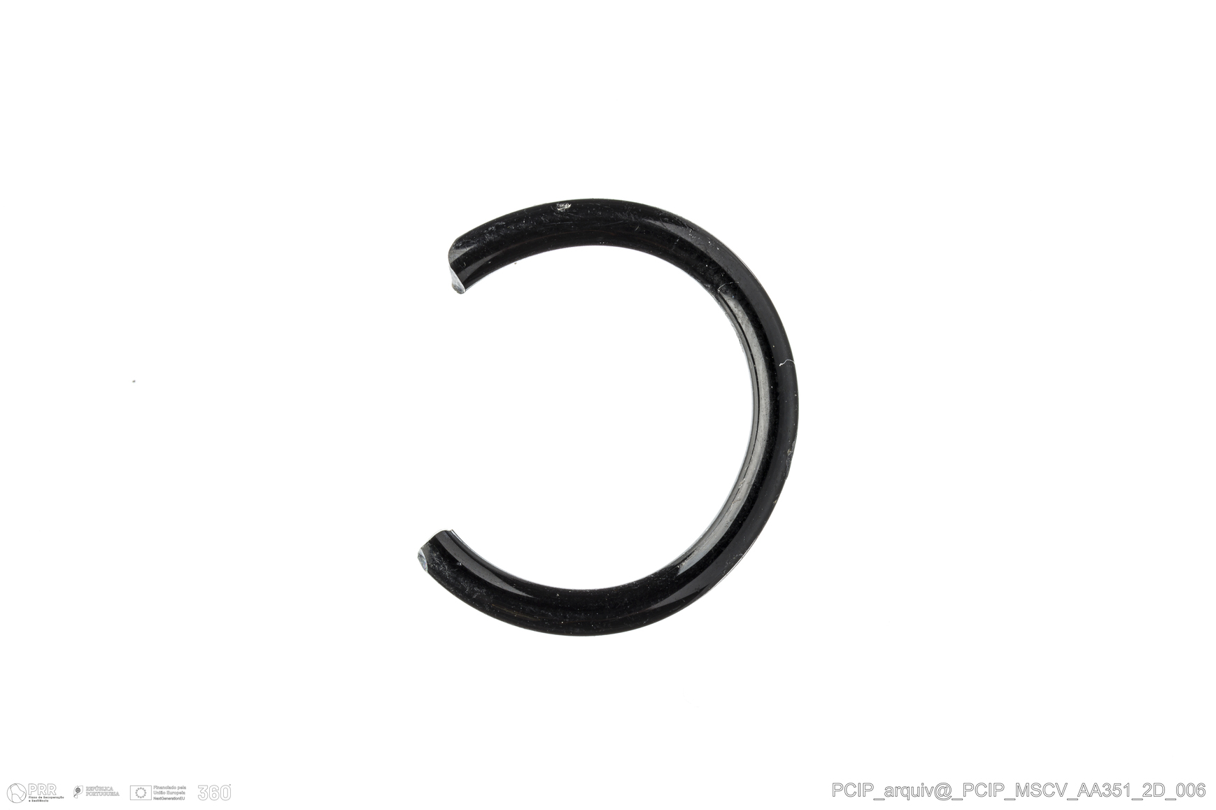 Matéria/Técnica: Vidro; Cronologia: Século XVI- XVII; Autoria: Desconhecida; Dimensões: Diâmetro máximo: 20mm; Altura: 2mm; Espessura: 2mm.