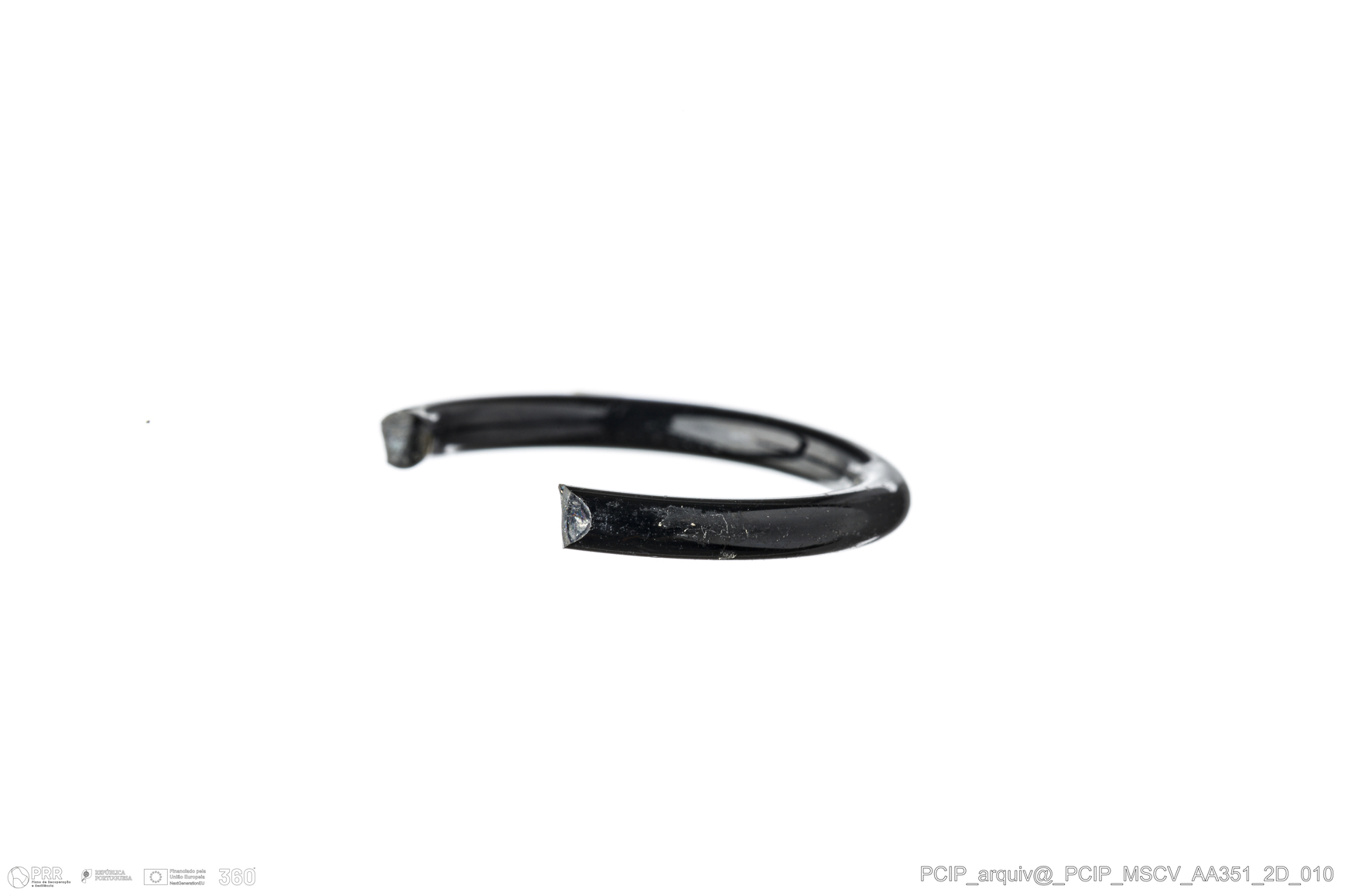 Matéria/Técnica: Vidro; Cronologia: Século XVI- XVII; Autoria: Desconhecida; Dimensões: Diâmetro máximo: 20mm; Altura: 2mm; Espessura: 2mm.
