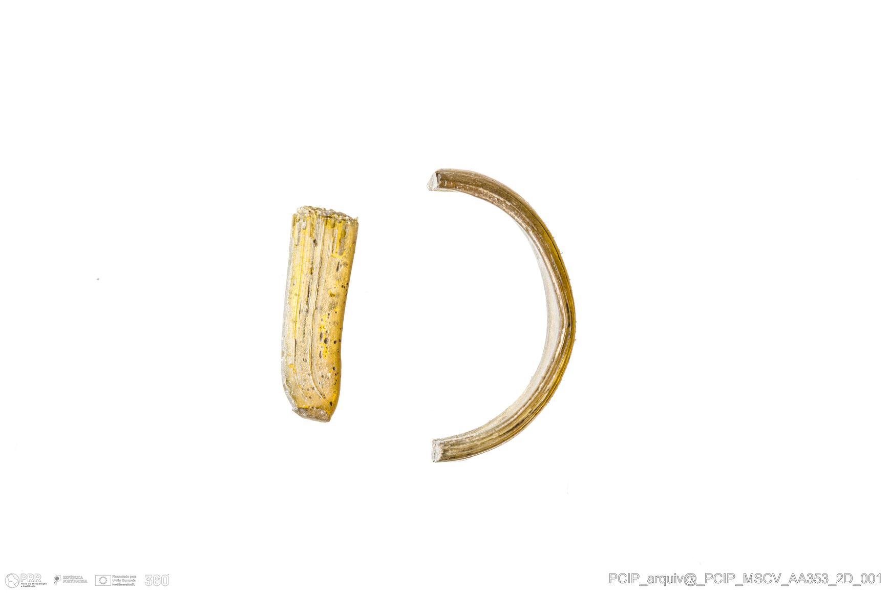 Matéria/Técnica: Vidro; Cronologia: Século XVI- XVII; Autoria: Desconhecida; Dimensões: Diâmetro máximo: 18mm; Altura: 4mm; Espessura: 1mm.