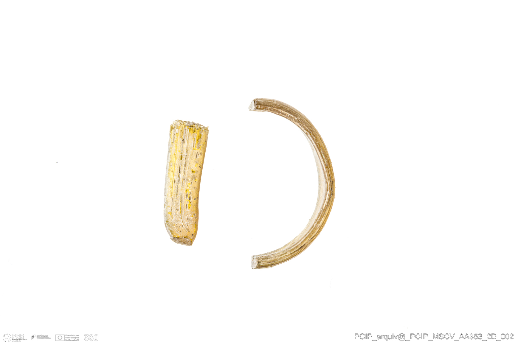 Matéria/Técnica: Vidro; Cronologia: Século XVI- XVII; Autoria: Desconhecida; Dimensões: Diâmetro máximo: 18mm; Altura: 4mm; Espessura: 1mm.