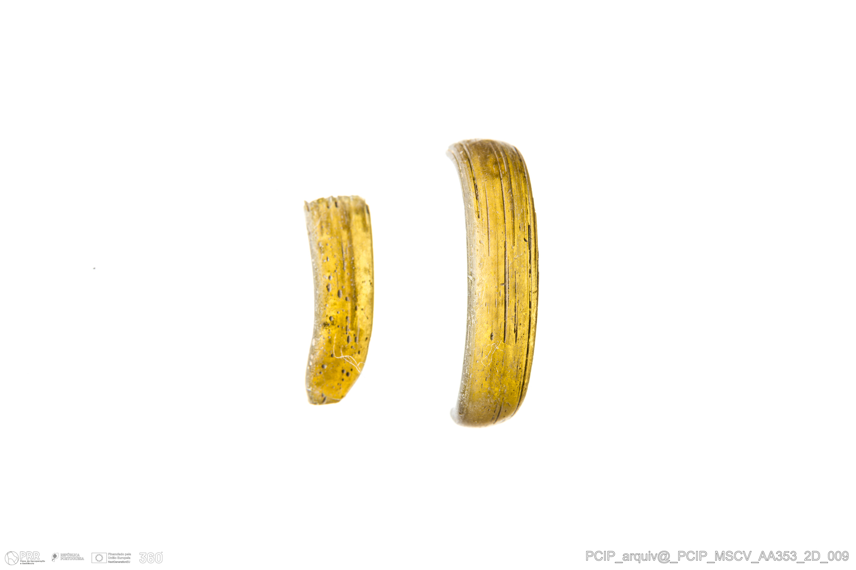 Matéria/Técnica: Vidro; Cronologia: Século XVI- XVII; Autoria: Desconhecida; Dimensões: Diâmetro máximo: 18mm; Altura: 4mm; Espessura: 1mm.