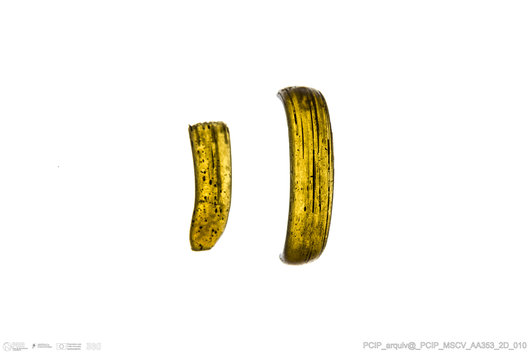 Matéria/Técnica: Vidro; Cronologia: Século XVI- XVII; Autoria: Desconhecida; Dimensões: Diâmetro máximo: 18mm; Altura: 4mm; Espessura: 1mm.