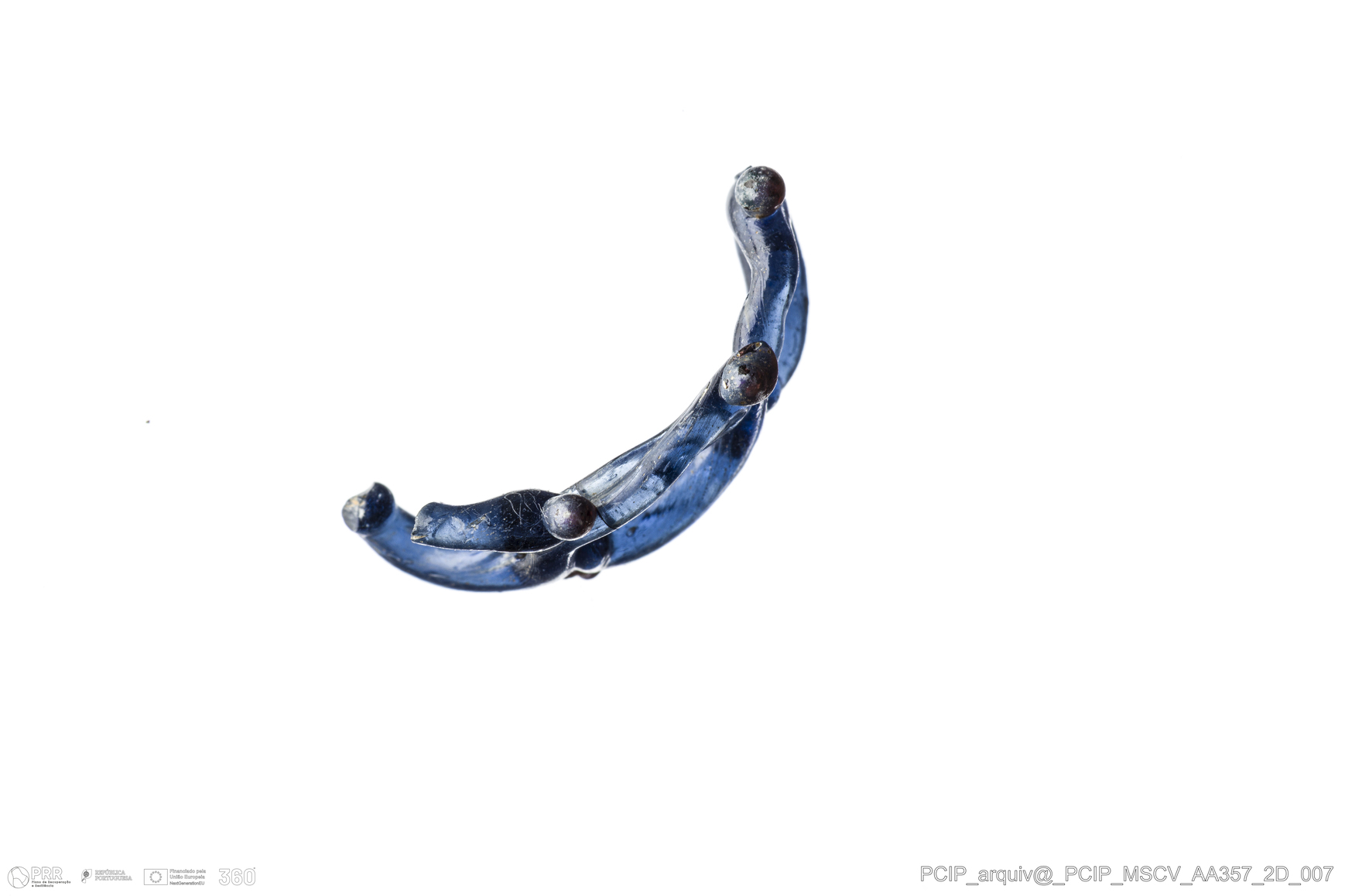 Matéria/Técnica: Vidro; Cronologia: Século XVI-XVII; Autoria: Desconhecida; Dimensões: Altura: 9 mm; Diâmetro: 19mm.