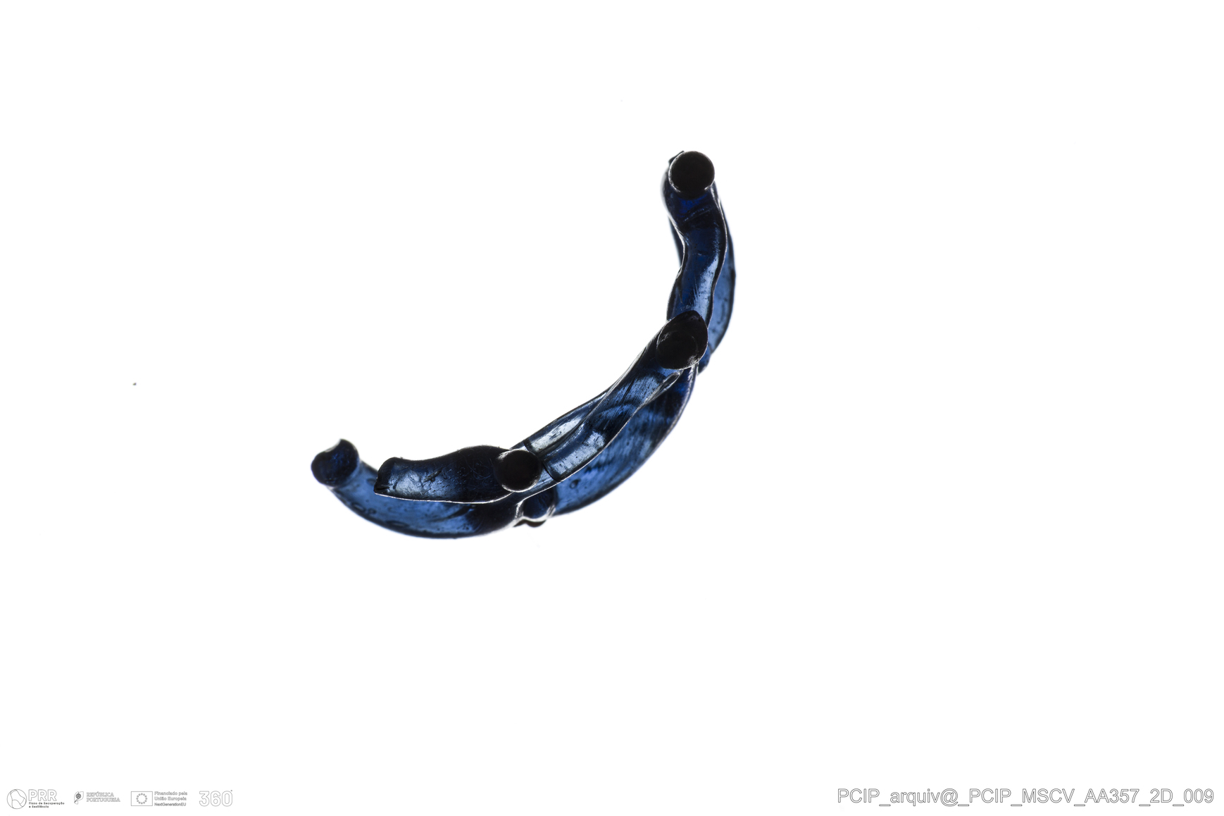 Matéria/Técnica: Vidro; Cronologia: Século XVI-XVII; Autoria: Desconhecida; Dimensões: Altura: 9 mm; Diâmetro: 19mm.