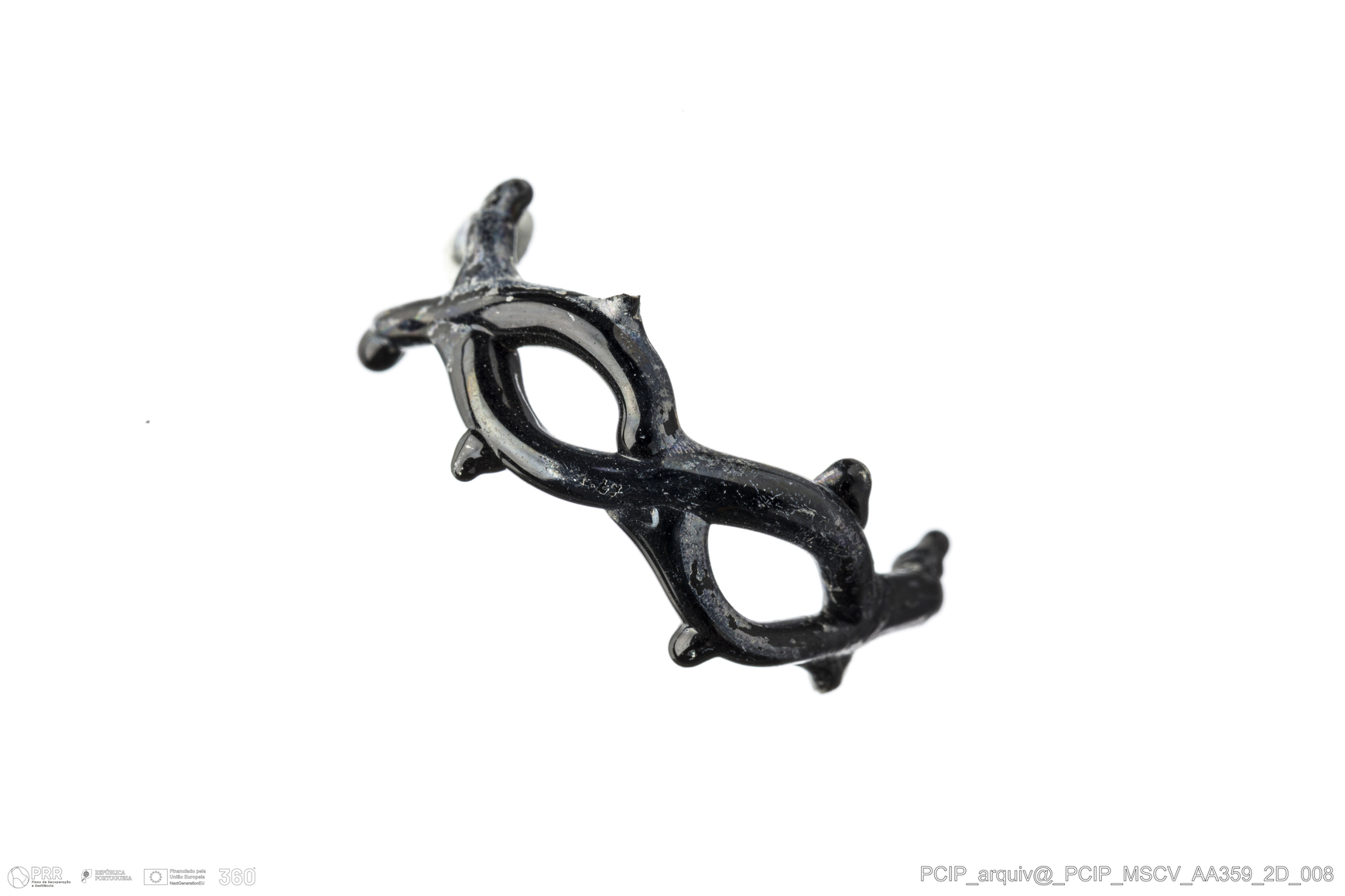 Matéria/Técnica: Vidro; Cronologia: Século XVI-XVII; Autoria: Desconhecida; Dimensões: Diâmetro: 21 mm.