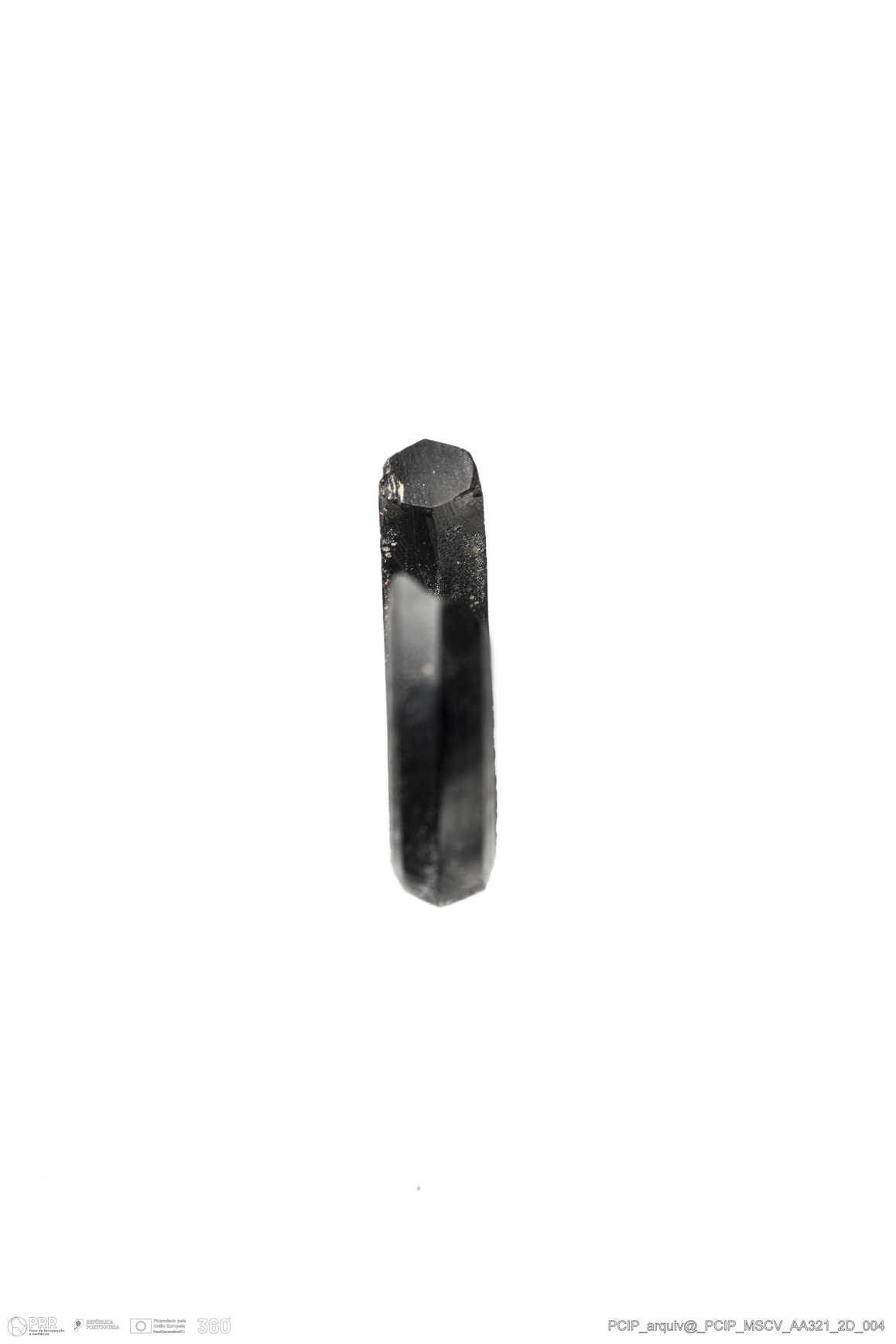 Matéria/Técnica: Azeviche; Cronologia: Século XVI- XVII; Autoria: Desconhecida; Dimensões: Diâmetro máximo: 19mm Altura máxima: 5mm Espessura máxima: 3mm.