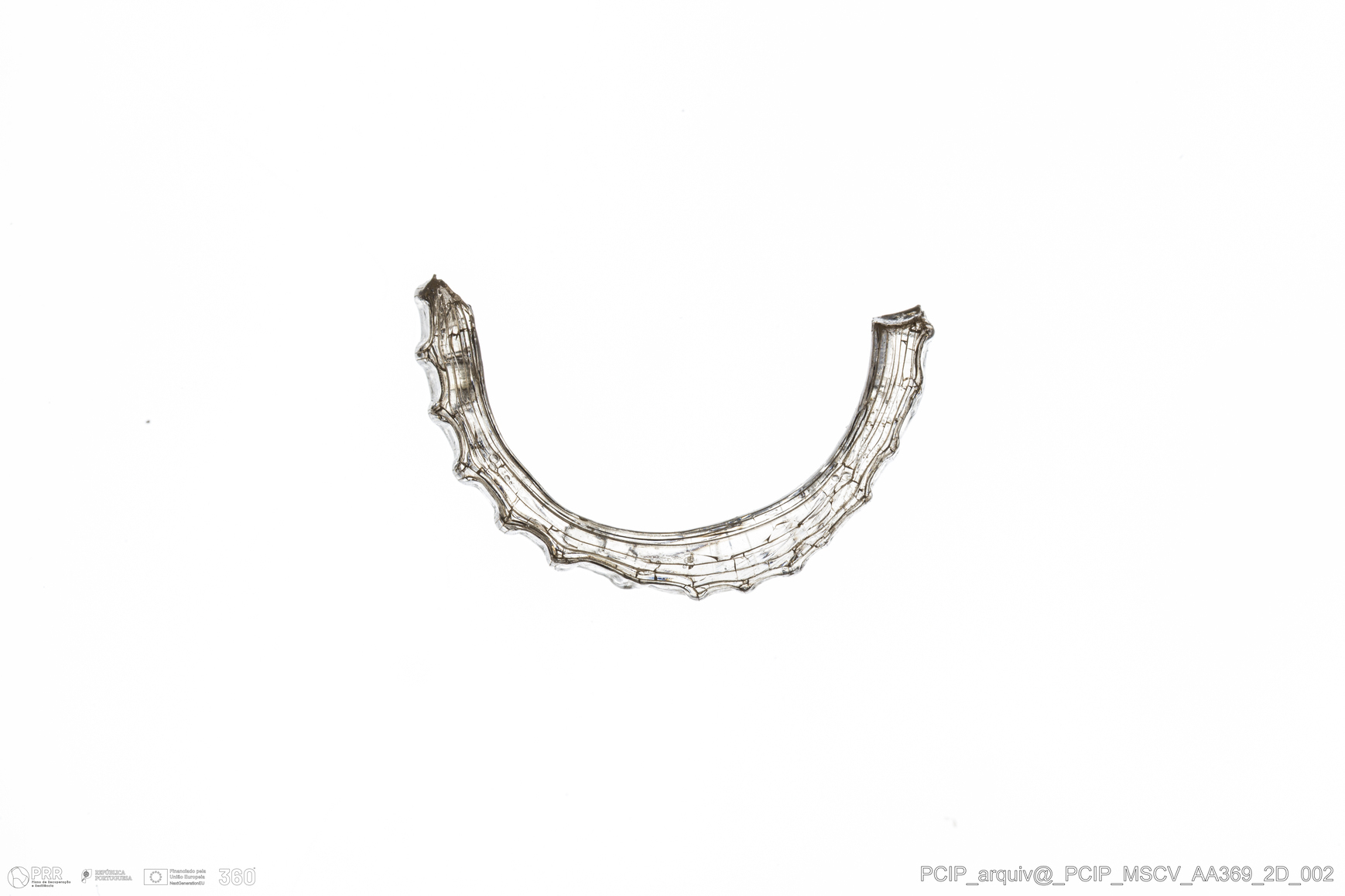 Matéria/Técnica: Vidro; Cronologia: Século XVI- XVII; Autoria: Desconhecida; Dimensões: Diâmetro máximo: 17mm; Altura: 4mm; Espessura: 2mm.
