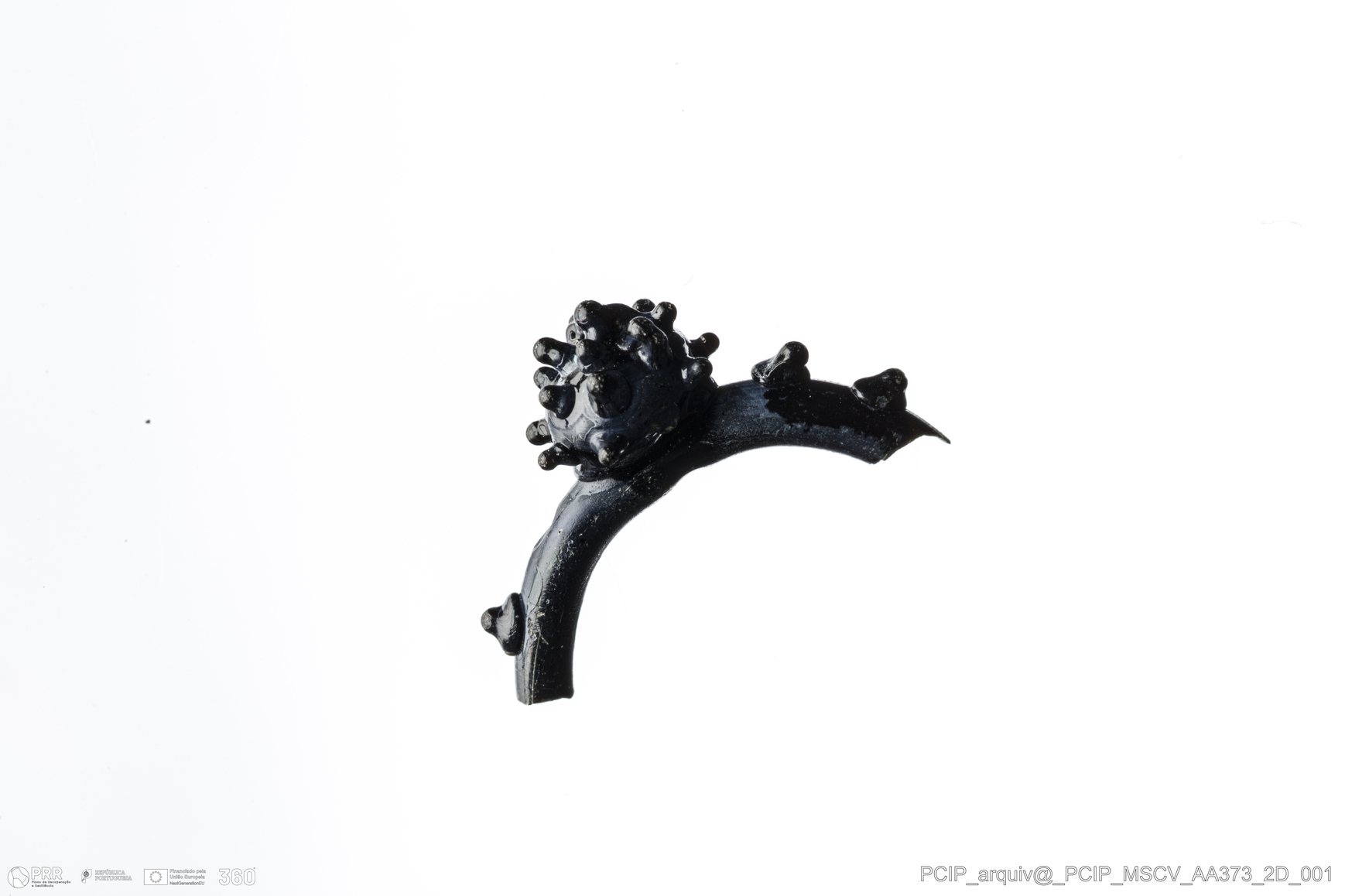 Matéria/Técnica: Vidro; Cronologia: Século XVI- XVII; Autoria: Desconhecida; Dimensões: Largura: 6mm; Altura: 8mm.