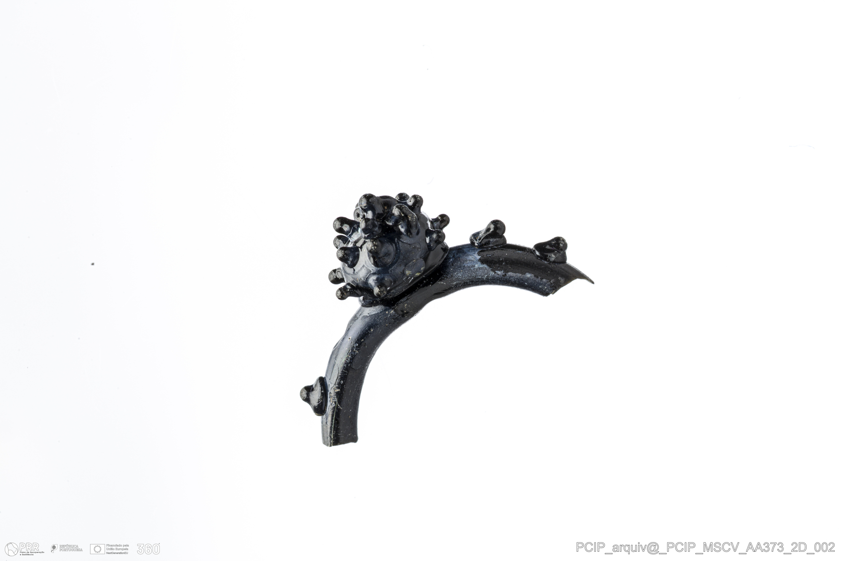 Matéria/Técnica: Vidro; Cronologia: Século XVI- XVII; Autoria: Desconhecida; Dimensões: Largura: 6mm; Altura: 8mm.