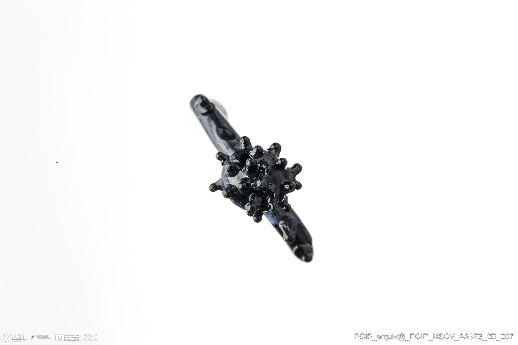 Matéria/Técnica: Vidro; Cronologia: Século XVI- XVII; Autoria: Desconhecida; Dimensões: Largura: 6mm; Altura: 8mm.